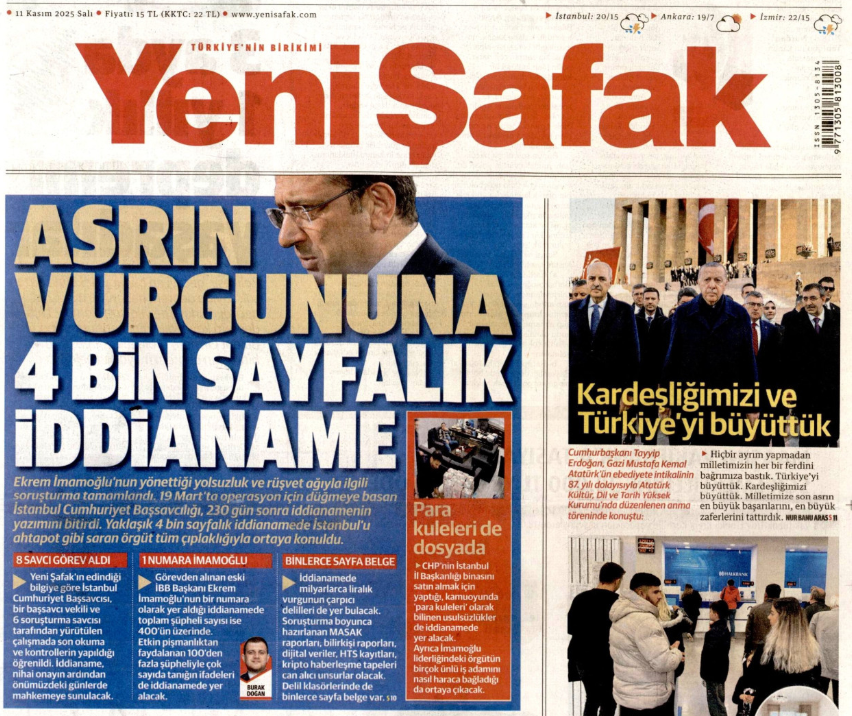 237 günden bu yana beklenen İBB iddianamesi henüz mahkemeye sunulmadan kamuoyuna duyurulmadan Yeni Şafak gazetesine sızdırıldı.