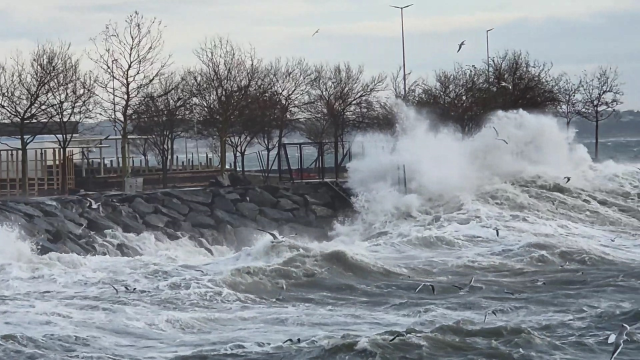 Avcılar’da lodosun etkisiyle denizde oluşan dalgaların boyu mendirekleri aştı. Sahile yürüyüşe gelenler cep telefonu kameralarıyla dalgaların oluşturduğu görüntüleri kaydederken, bazıları ise şiddetli rüzgar nedeniyle yürümekte güçlük çekti.