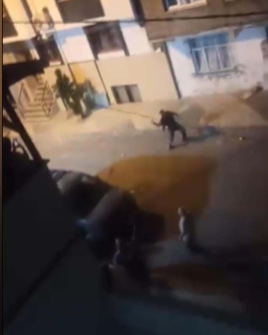 Cep telefonu kameralarıyla kaydedilen görüntülerde, sokak üzerinde onlarca kişinin birbirine taş ve sopalarla saldırdığı, bazı evlerin balkon ve pencerelerinin hedef alındığı anlar yer aldı. Görüntülerde evlerin içinden de husumetli gruba taş atıldığı görüldü.